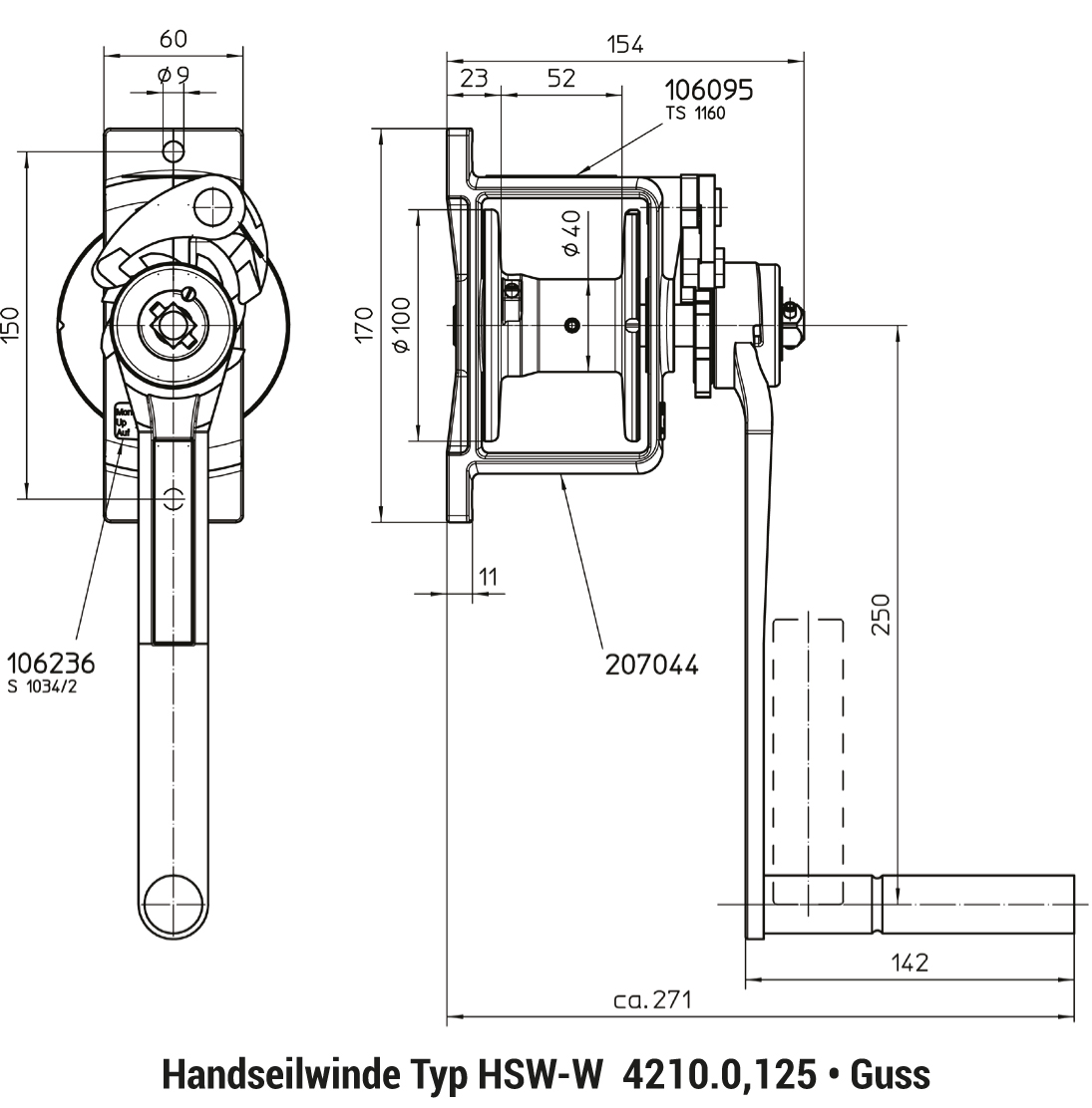 Hub-/Kurbelumdrehung in mm 1. Seillage |