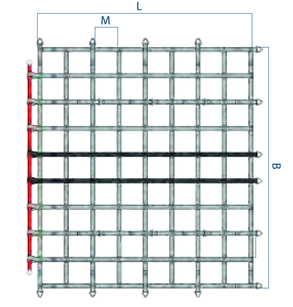Set mit Grundnetz, Triangeln rundum und Zurrgurten 2 m - ohne Sperrstange