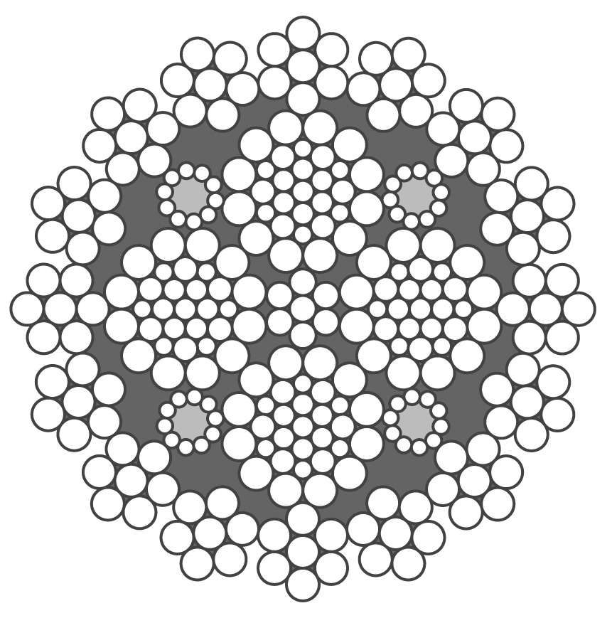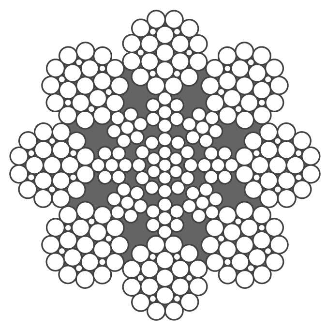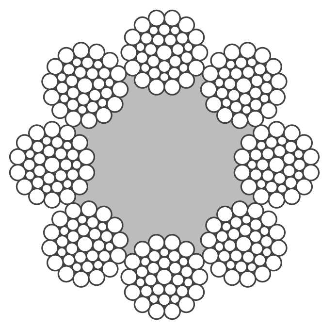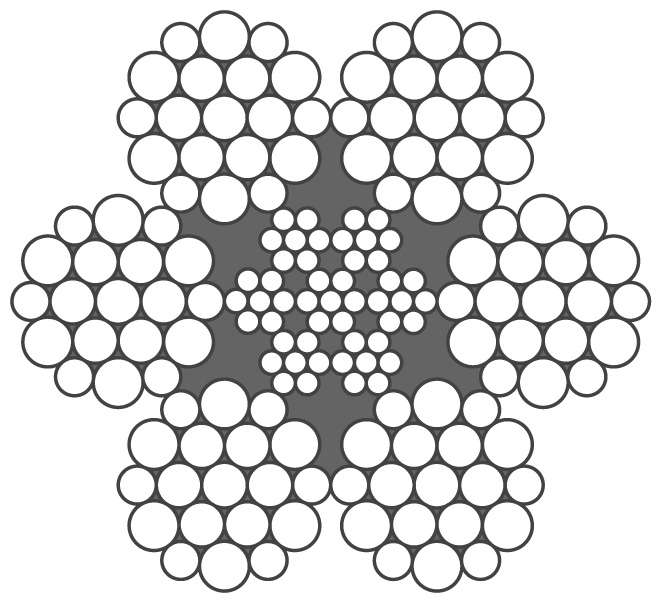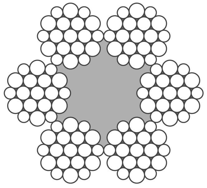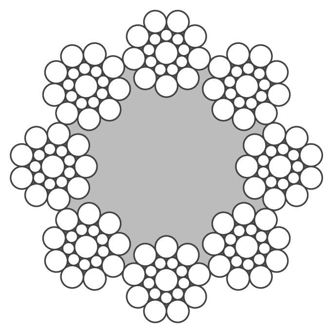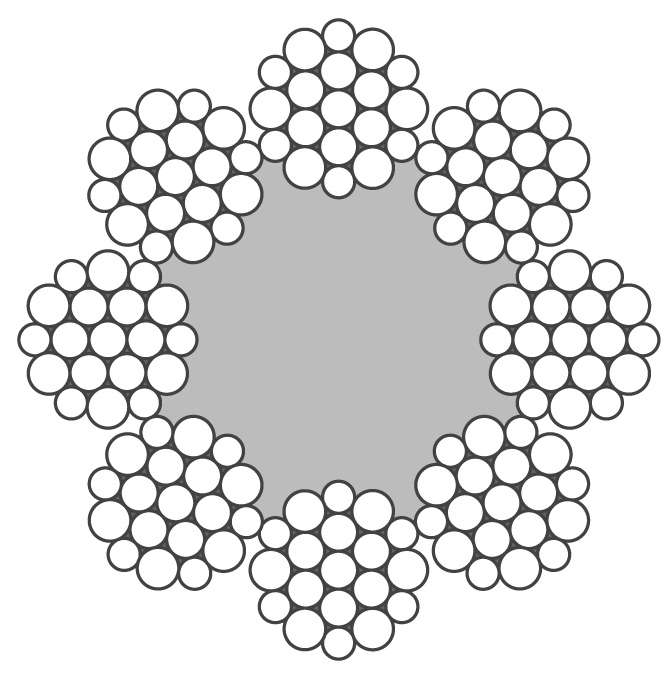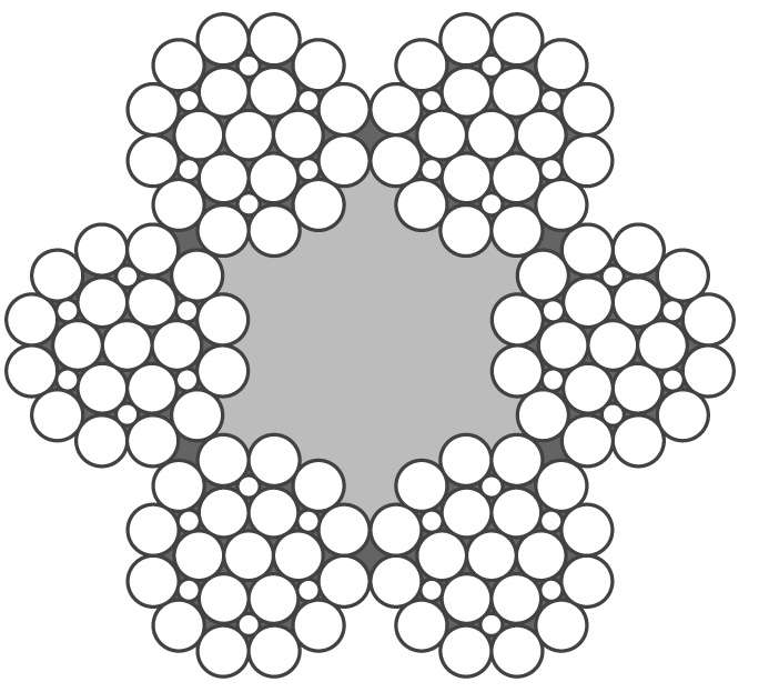 Stahldrahtseil EN 12385-4 Machart WS - verdichtet • Konstruktion 6x36 Warrington-Seale (ehemals DIN 3064)