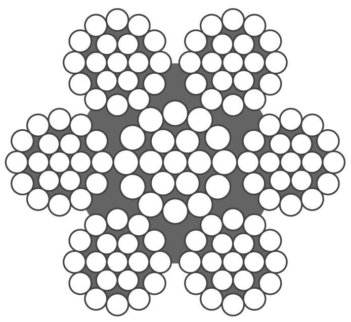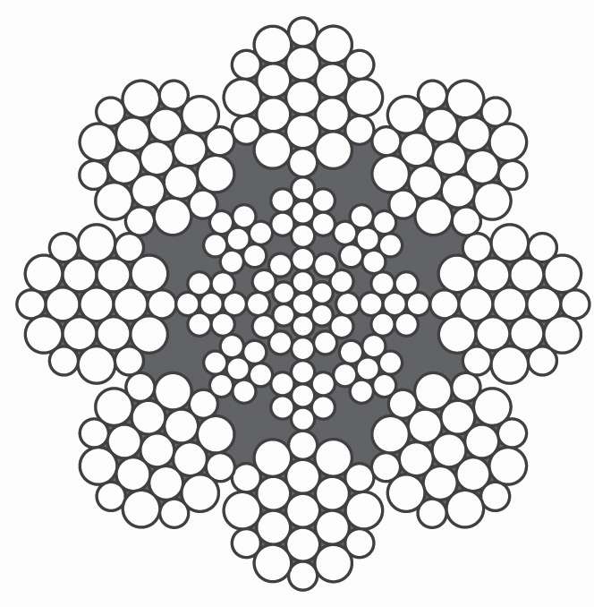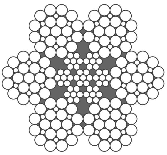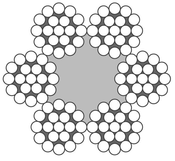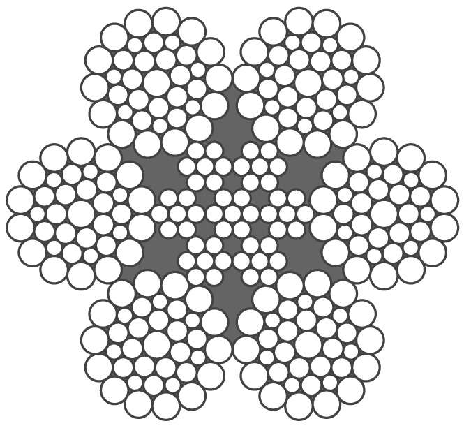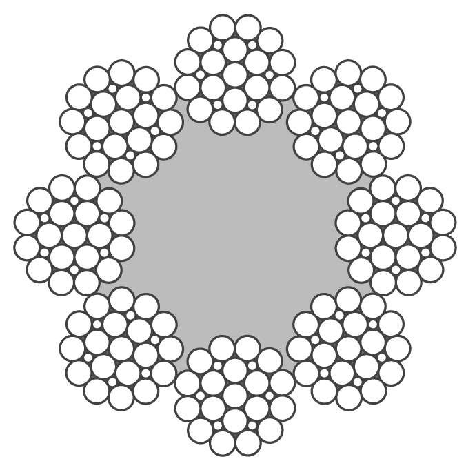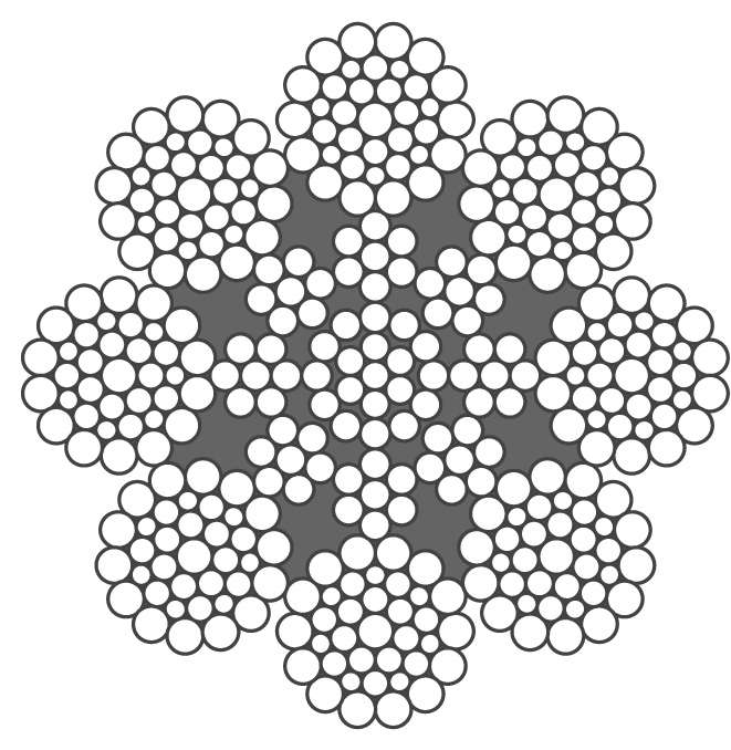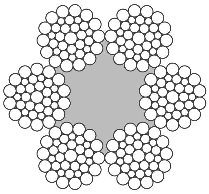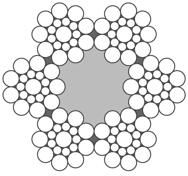 Stahldrahtseil EN 12385-4 Machart WS - verdichtet • Konstruktion 6x36 Warrington-Seale (ehemals DIN 3064)